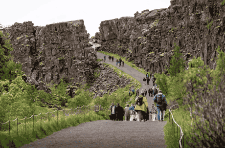 You depart from the accommodation in Reykjavรญk at 8:20 am approximately. Today you visit the Golden Circle. The tour consists of a guided visit to Parqueingvellir National Park (Unesco World Heritage Site and birthplace of the first parliament in the world established in 930 a.C.), the geothermal zone of Geysir, and the waterfall of Gullfoss (the golden waterfall).
